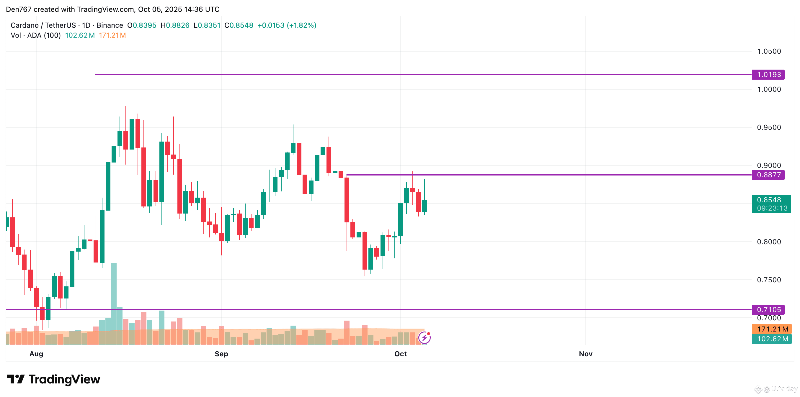 ADA is trading at $0.8541 at press time.