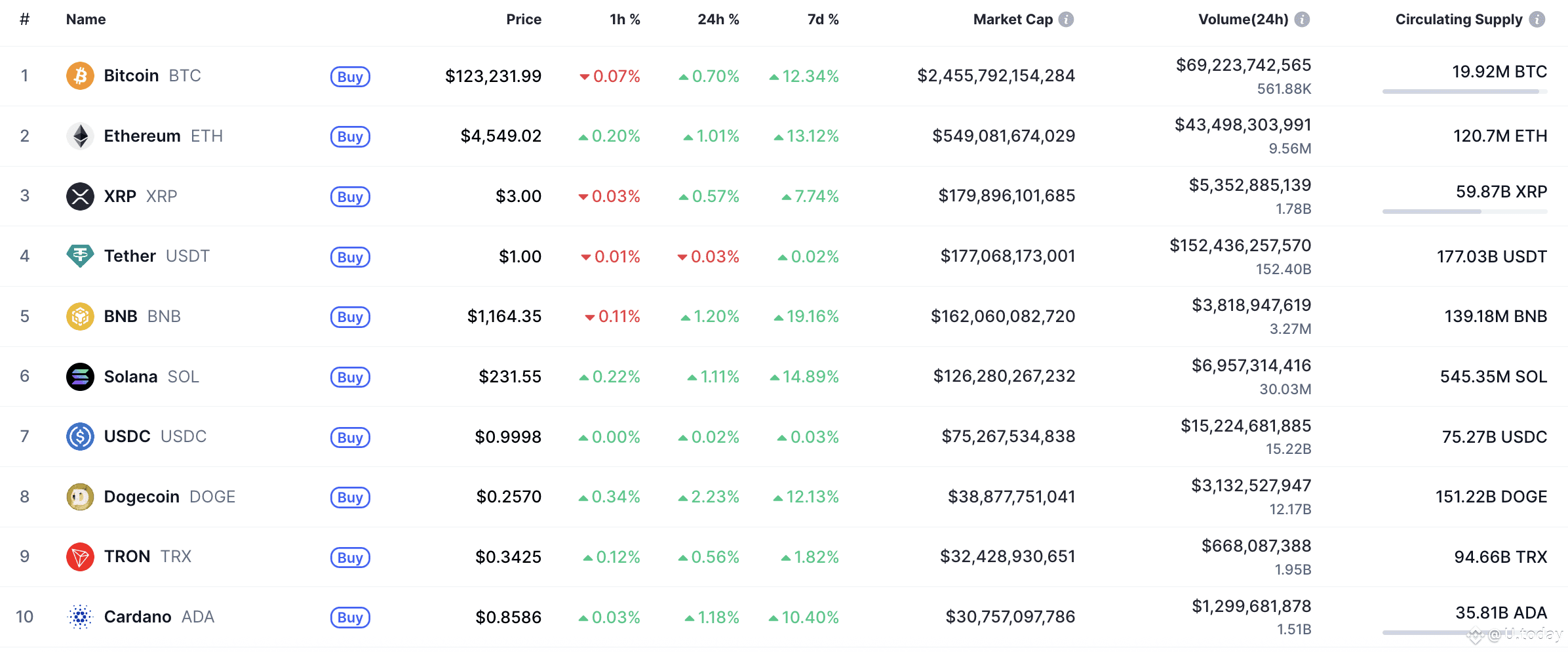 The prices of most coins are rising on the last day of the week, according to CoinMarketCap.