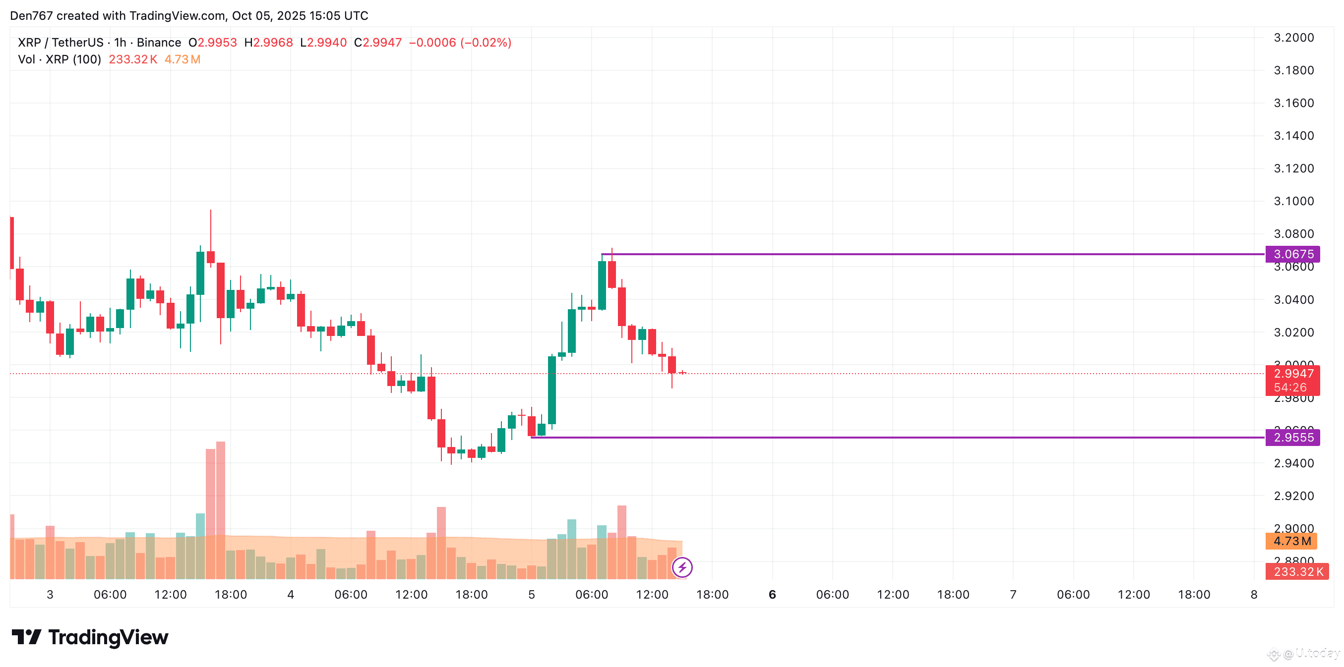 On the hourly chart, the rate of XRP is going down after a false breakout of the local resistance of $3.0675. If bulls lose the $3 zone, traders may see a test of the $2.94 area shortly.