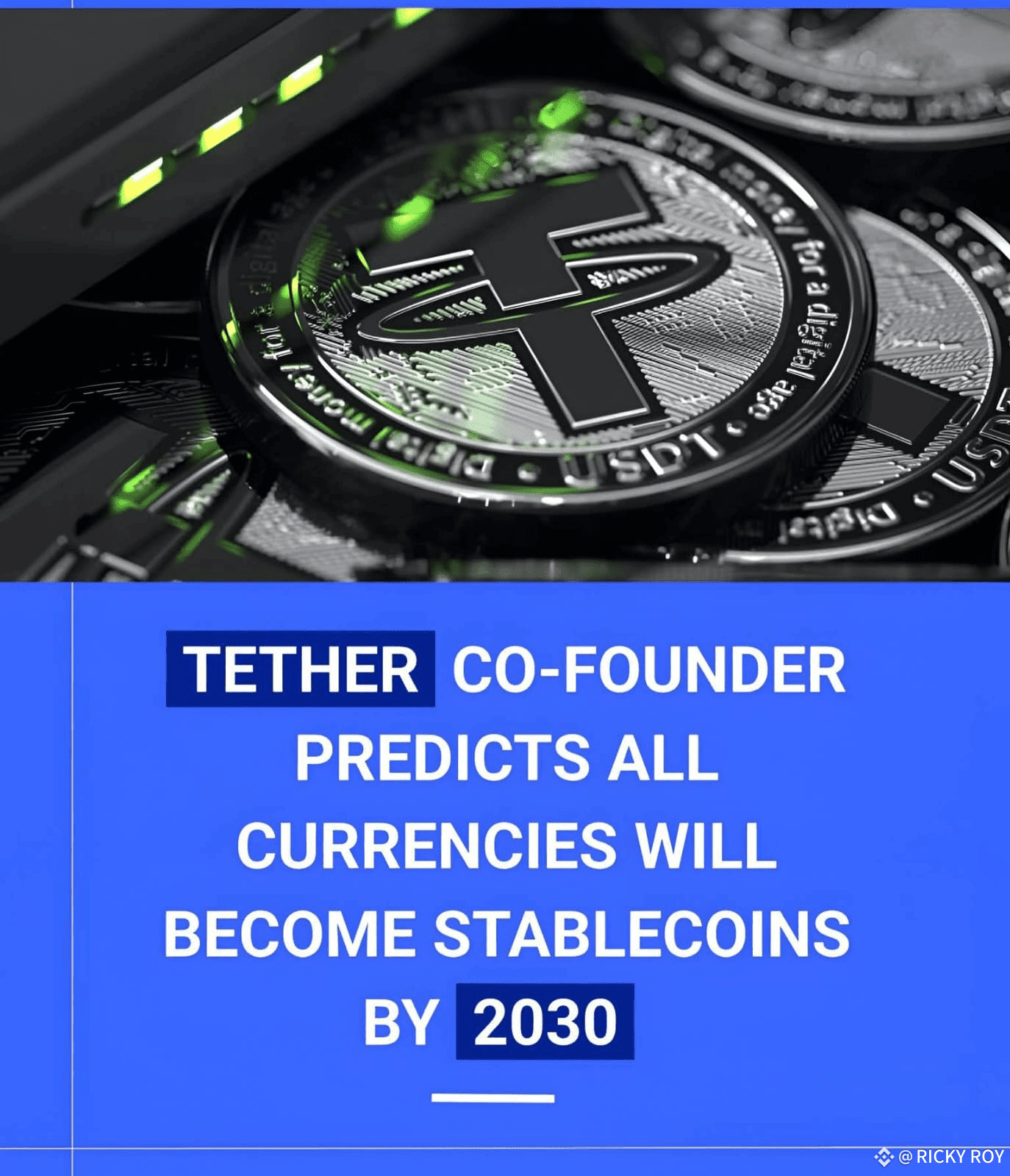 Tether co-founder Reeve Collins expects all currency to exist as #stablecoins by 2030 as part of a broader shift moving finance on-chain. He stated that even fiat currencies like dollars, euros, and yen will operate on blockchain rails within five years.