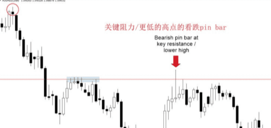 2. If the market is in a downward trend, then you should pay attention to the sell signals at resistance levels, as shown in the figure below: