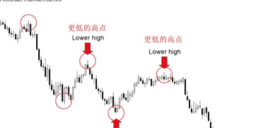 Lower highs and lower lows; the figure below is a typical downward trend:
