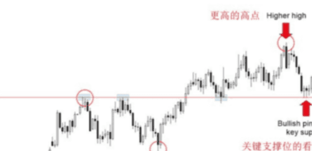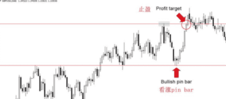 1. If the market is in an upward trend, then you should start paying attention to the buy signals at key support levels, as shown in the figure below, where a bullish pin bar has appeared at the key support level.