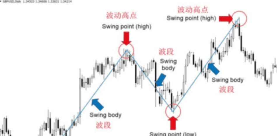 A swing mainly consists of two parts -- the wave and the fluctuation points. As shown in the figure below: