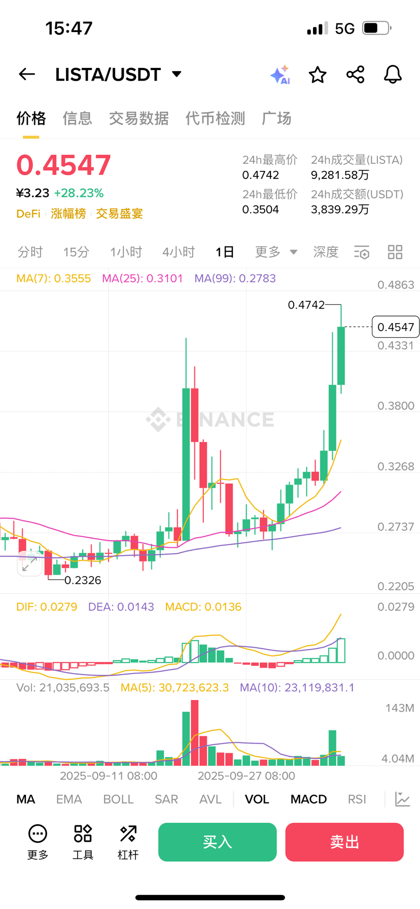 Market sentiment is warming: The DeFi sector as a whole is rebounding, with LISTA attracting funds due to its high TVL (Total Value Locked) and relatively low valuation.