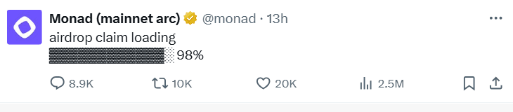 Monad has filtered active users through large-scale token distribution and interaction tasks.