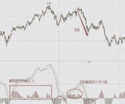 4. When the 2nd wave pulls back and the MACD volume column shortens or expands twice, enter the market to short trade the 3rd wave.