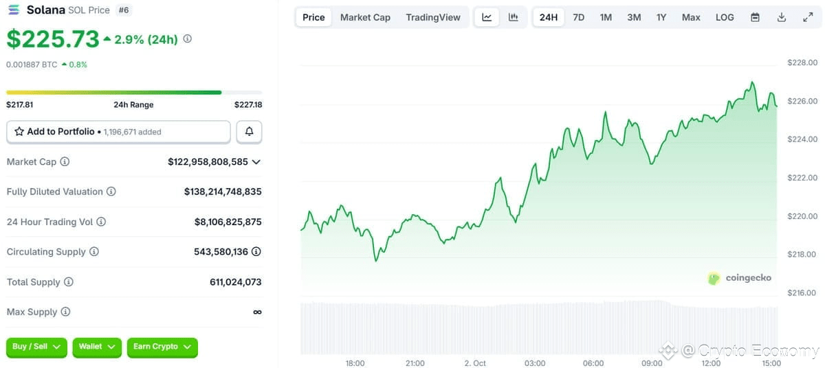 The Solana price prediction has shifted bullish as the market rallies. SOL has cleared the $220 resistance level; momentum indicators suggest more upside. The RSI sits at 70, showing strong buyer control, while MACD lines remain firmly in positive territory.