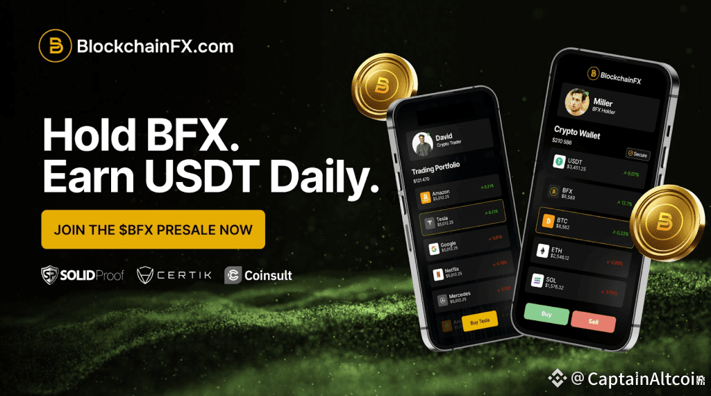BlockchainFX ($BFX) is setting new standards for what a presale project can achieve. It’s the first crypto ecosystem that allows users to trade across more than 500 global assets, including crypto, stocks, commodities, and forex, all through one platform. Holders of the BFX token receive daily USDT rewards every time someone trades, giving investors an ongoing stream of passive income that doesn’t rely on price swings.
