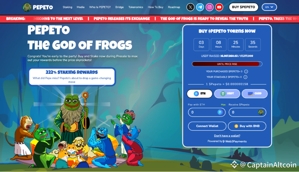 At this stage, PEPETO is priced at $0.000000158 and follows a structured model that rewards early entries ahead of further presale stages and future listings. Live staking near 222% APY, stepping down as participation grows, adds urgency and aligns long term holding with network growth.