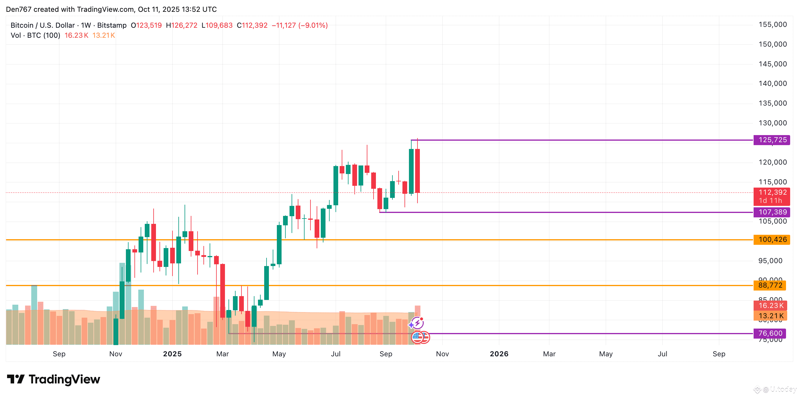 From the midterm point of view, sellers have seized the initiative. If the weekly bar closes below the previous candle low at $111,597, the drop may lead to a test of the $100,000-$105,000 zone soon.