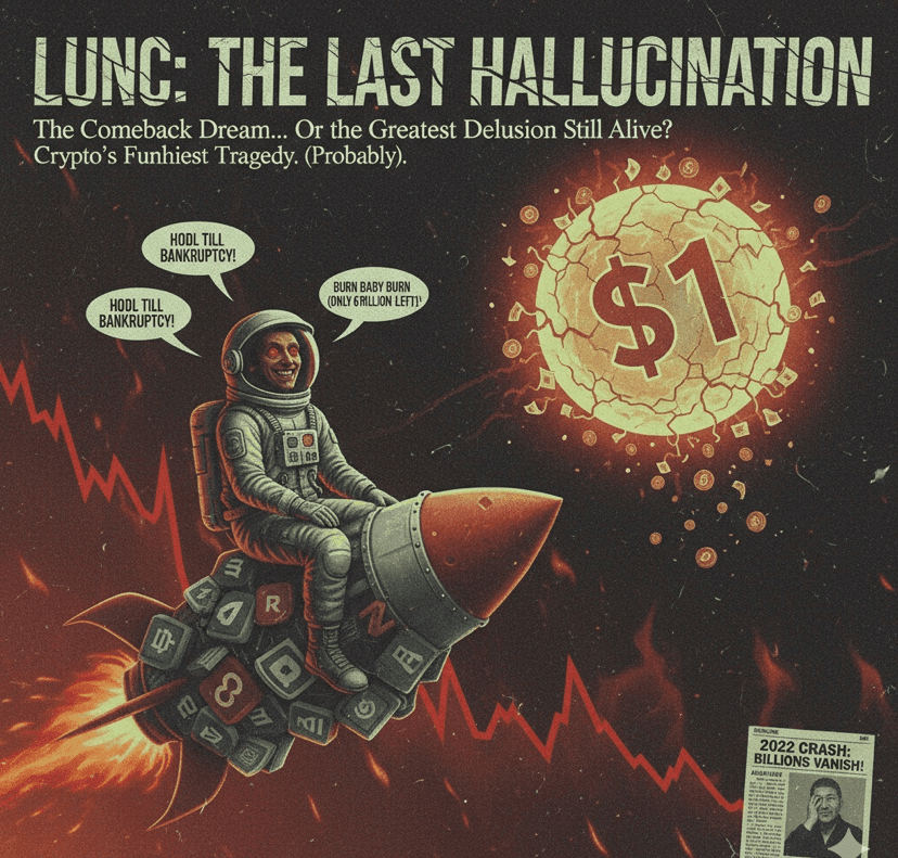 Be honest — every time you see someone shouting “LUNC to $1!”, you roll your eyes. But deep down, a small part of you wonders… what if? Because that is exactly what $LUNC sells best — hope wrapped in broken promises and math with billions of tokens that simply doesn’t add up. Let’s face the truth — Terra Luna didn’t crash, it exploded. In 2022, Terra Luna was not just another project — it was the future. Until it became this. UST lost its peg, the system collapsed, and billions vanished overnight. Ordinary investors suffered. And those who told everyone to “hold on”? They were already halfway out, cashing out while the faithful watched their screens turn red. This wasn’t a crash. It was betrayal. “Rebirth” — or just new packaging? Then came the “revival” — Luna Classic ( $LUNC ). The word “classic” sounds noble. But let’s call it what it is: a relic of the largest disaster in crypto history. Sure, there’s talk of burnings. 420 billion disappeared! Great — there are still 6 trillion left. You’ll need divine intervention (or a full-blown miracle) for that to even come close to the dream of $1. People talk about supply as if it’s a meme — because at this point, it is. But here’s what makes it wild… Even after all the chaos, after all the losses, people still believe. They hold, they post, they defend, they dream. And maybe — just maybe — this belief is the craziest part of it all. Because LUNC is no longer just a coin. It’s a movement fueled by heartbreak, vengeance, and blind faith. It’s people trying to turn trauma into triumph. Reality check. Whales control the game. Exchanges dictate the flow. Tokenomics are harsh. The burn rate is a slow drain. And yet — each drop brings new believers saying, “This is the bottom.” Maybe it is. Maybe it isn’t. But one thing is for sure — when $LUNC finally moves, it will either create legends or lessons for all who hold it.