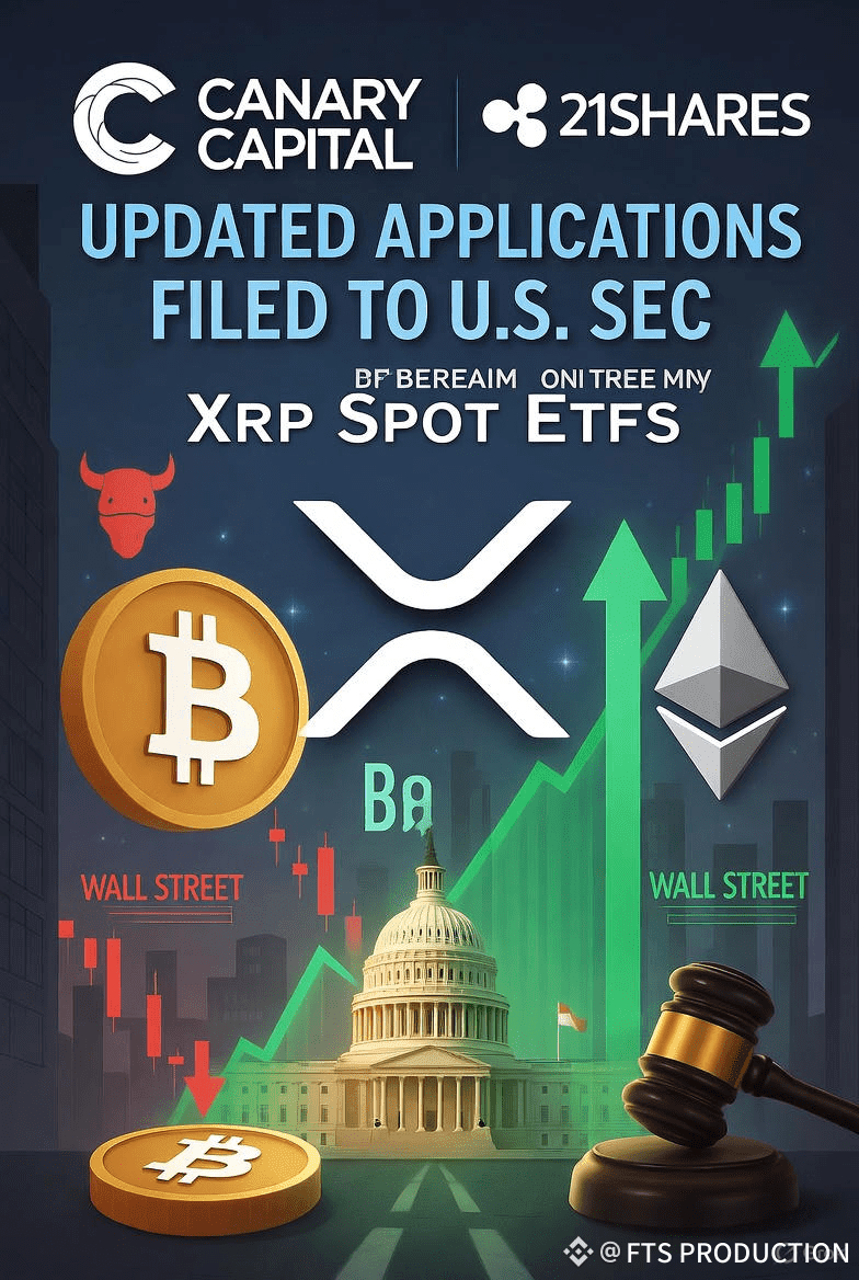Last night, during all the panic and chaos, Canary Capital and 21Shares quietly sent updated applications for $XRP Spot ETFs to the U.S. SEC (the financial regulator).