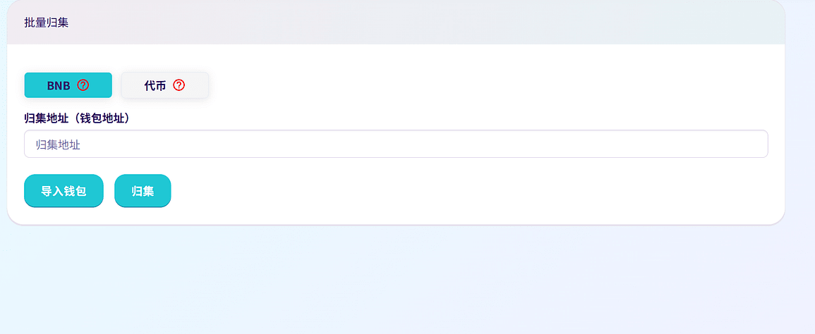 Now, we enter the core part: how to operate step by step on batch aggregation. The entire process is divided into two modes: BNB and tokens, with a user-friendly interface and progress prompts. It is recommended to demonstrate on the testnet first, and execute on the mainnet after confirming correctness.