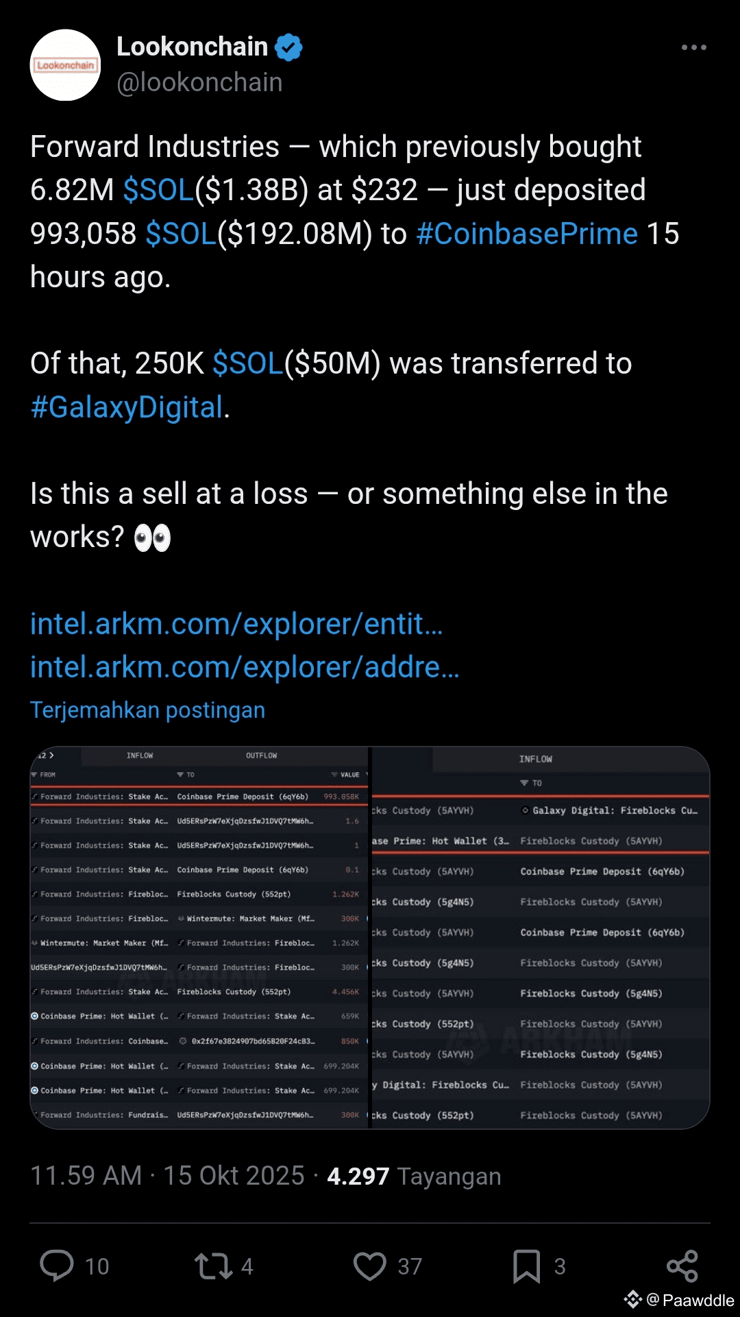 Forward Industries’ massive $ 192M SOL move to Coinbase Prime just sent shockwaves through Solana’s market 🚀 — SOL/USDT jumped over 4% as traders rushed in anticipating Galaxy Digital’s next big play 💰.