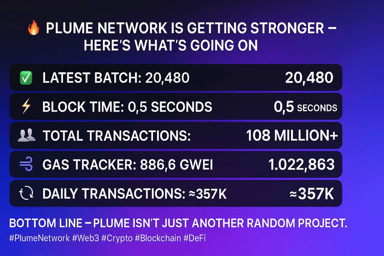 I just checked the latest data on Plume Explorer, and things look very good. The network is active and fast and shows real growth, not just noise.