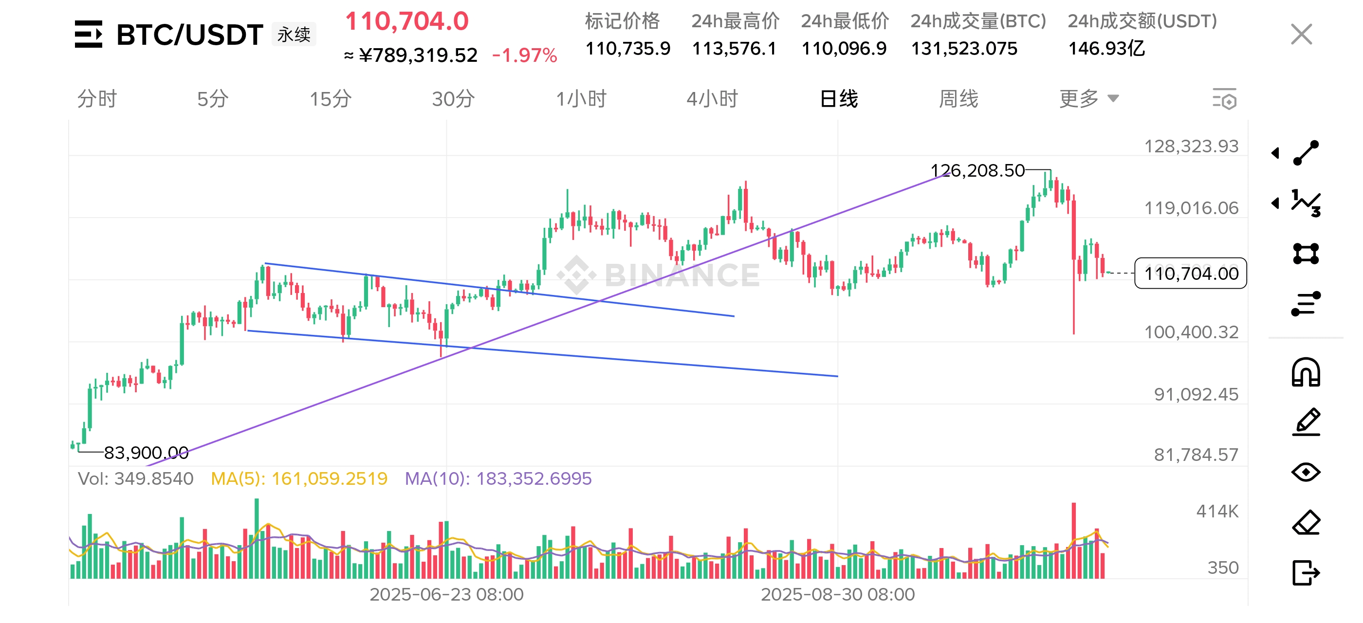 Short-term cautious, prioritize watching the resistance at 119,016. If the price pulls back to stabilize with low volume in the 105,000 - 110,000 range, a small long position can be tried, stop loss at 100,000, with a target of 118,000 - 119,000; if it rebounds to 119,016 under pressure, consider a small short position after taking profits on the rebound, stop loss at 120,000, with a target of 108,000 - 105,000.