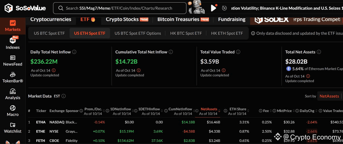 This week, Ethereum showed its superiority, recording an increase of 4.2% to trade at $4,154. The recovery is accompanied by good inflows into ETFs and technical strength at key support levels. Spot ETH ETFs have recorded a net inflow of $236.2 million as a drastic reversal of the outflows recorded last week. Fidelity’s FETH was first in the rush, and total assets in Ethereum ETFs currently stand at over $28 billion, a fact that demonstrates ETH as an institutional favorite.