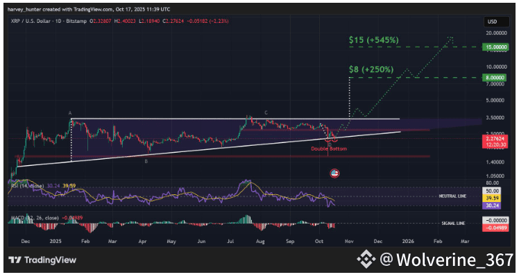The key breakout threshold sits at $3.40, a resistance level that has capped upside throughout the pattern. Once flipped to support, XRP could rally 260% toward its $8 technical target.@Ripple