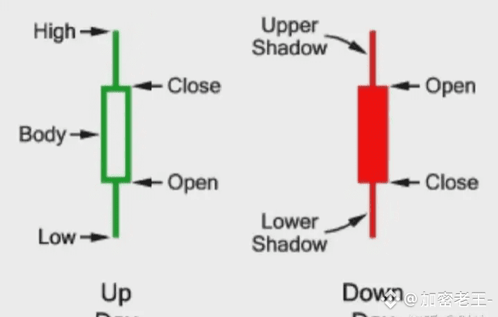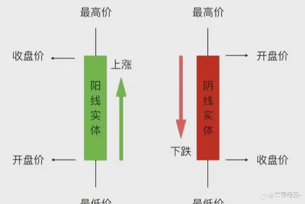 ️ 开收盘价之间形成“矩形实体”,连接最高最低价,构成完整K线。