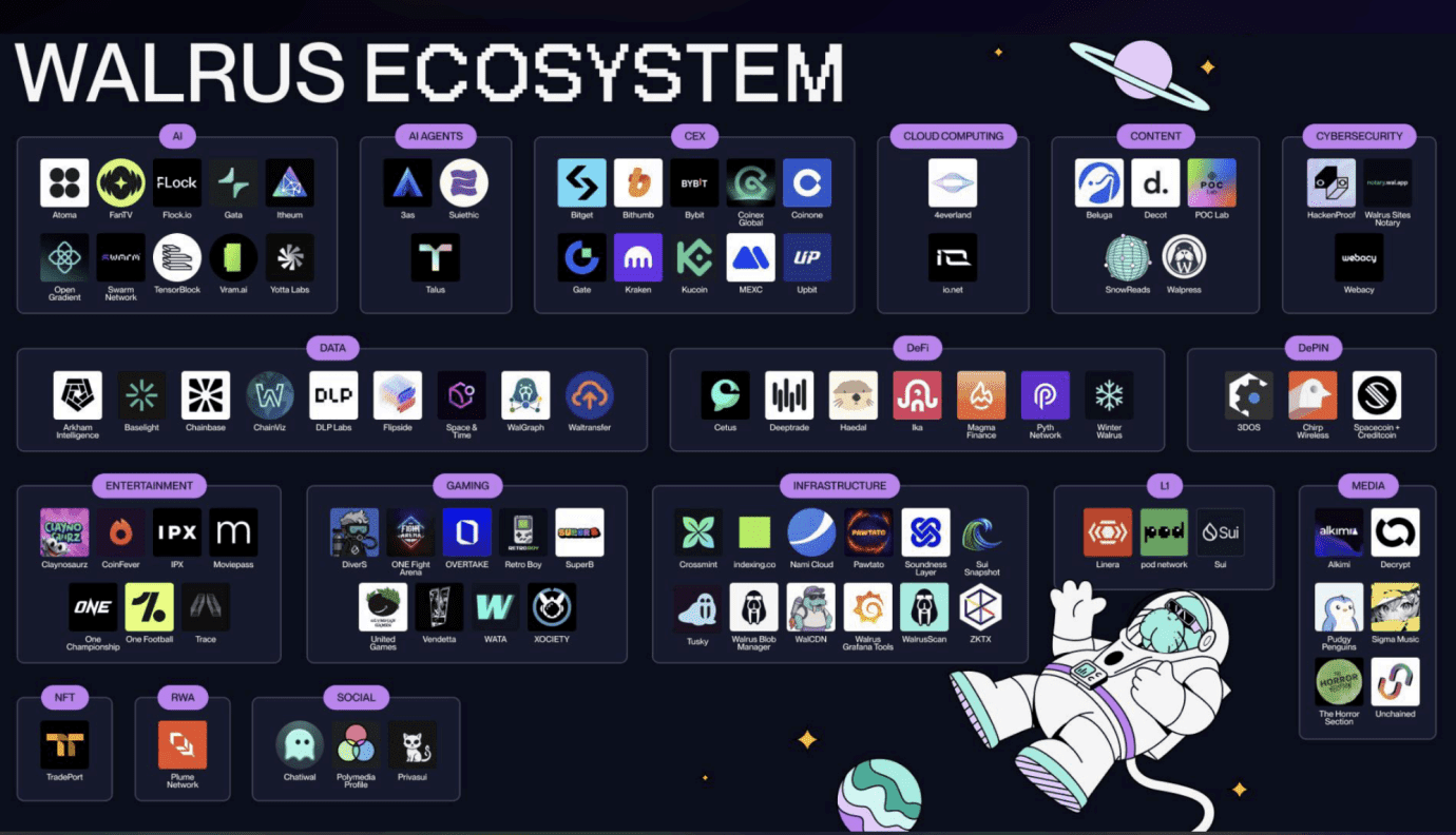 Simply put: Walrus is a decentralized data storage platform that allows big data ('blobs' like video, images, AI files) to be stored, used, and monetized across various chains, like Ethereum, Solana, Sui, and others.