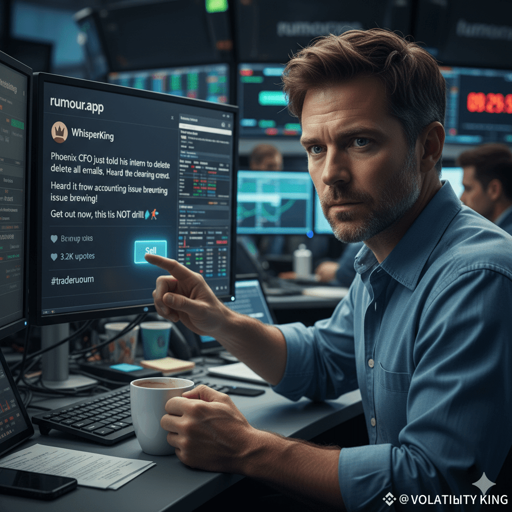 the ambient market buzz already thick in his ears. It was 9:26 AM, just four minutes to the opening bell. He pulled up his least favorite, most compulsive habit: rumour.app. He knew better than to trust anonymous chatter, but the potential edge was too much to ignore. The #traderumour feed was boiling today, specifically around Phoenix Bio, his largest holding. A user named 'WhisperKing' had posted an unusually detailed, emotional message: "Phoenix CFO just told his intern to delete all emails before the weekend. Heard it from the cleaning crew. Massive accounting issue brewing. Get out now, this is NOT a drill! 🏃♂️💨" The post had three thousand upvotes in ten minutes, creating a visible wave of anxiety that transcended logic.