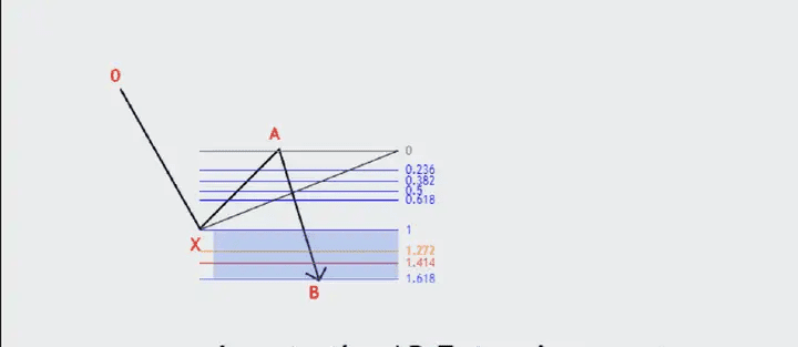 AB: The extension wave that exceeds the XA wave, usually reaching the 113% to 161.8% Fibonacci retracement level of the XA wave.