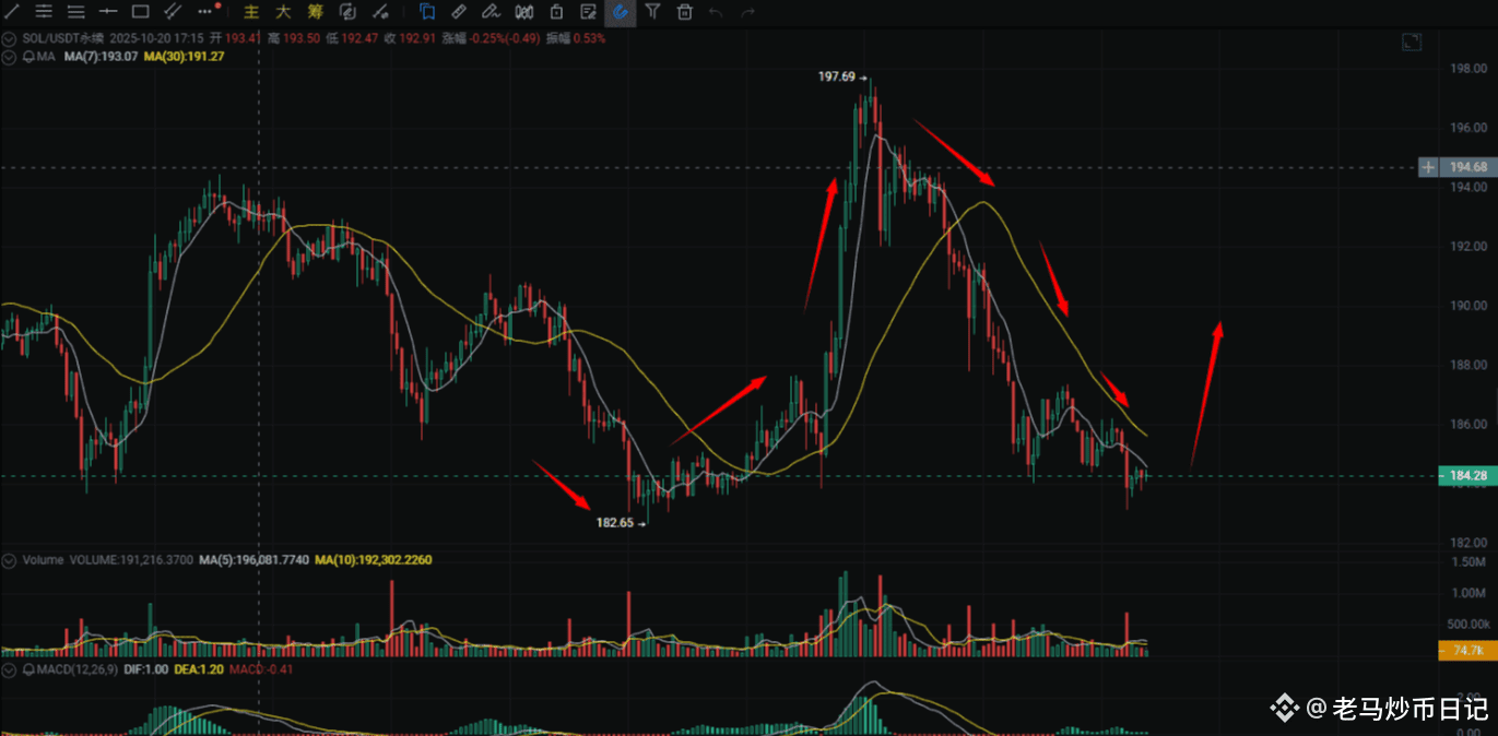 综合市场环境与技术面特征,短期 SOL 价格大概率延续震荡整理格局。关键支撑位聚焦 182 美元附近,该位置既是前期震荡平台下沿,也是 20 日均线所在区域,支撑有效性较强;若能成功守住该支撑位,价格有望开启反弹行情,向上测试 187-192 美元区间压力。反之,若跌破 182 美元支撑且成交量放大,可能触发止损盘出逃,价格或将下探 175-180 美元区间。
