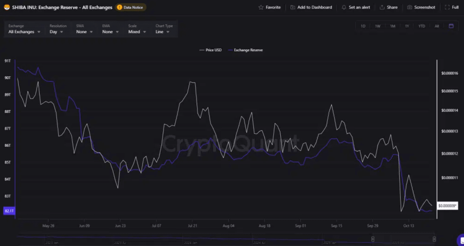SHIB's exchange reserves suddenly increased, clearly bearish in the short term, but the long-term trend still leans towards stable confidence among holders.