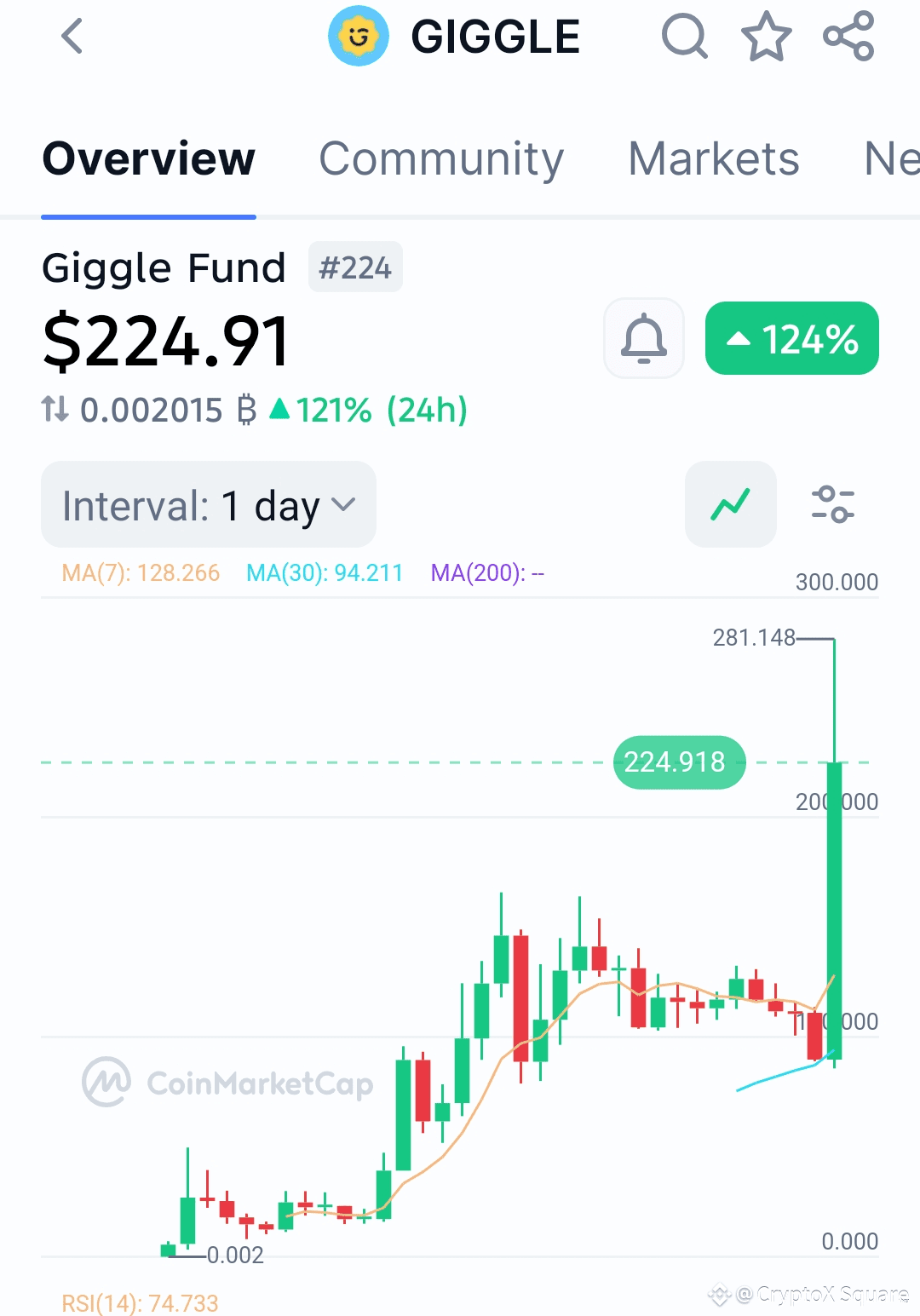 All-Time High (ATH): $281.15 (+120.46% in 24 hours)