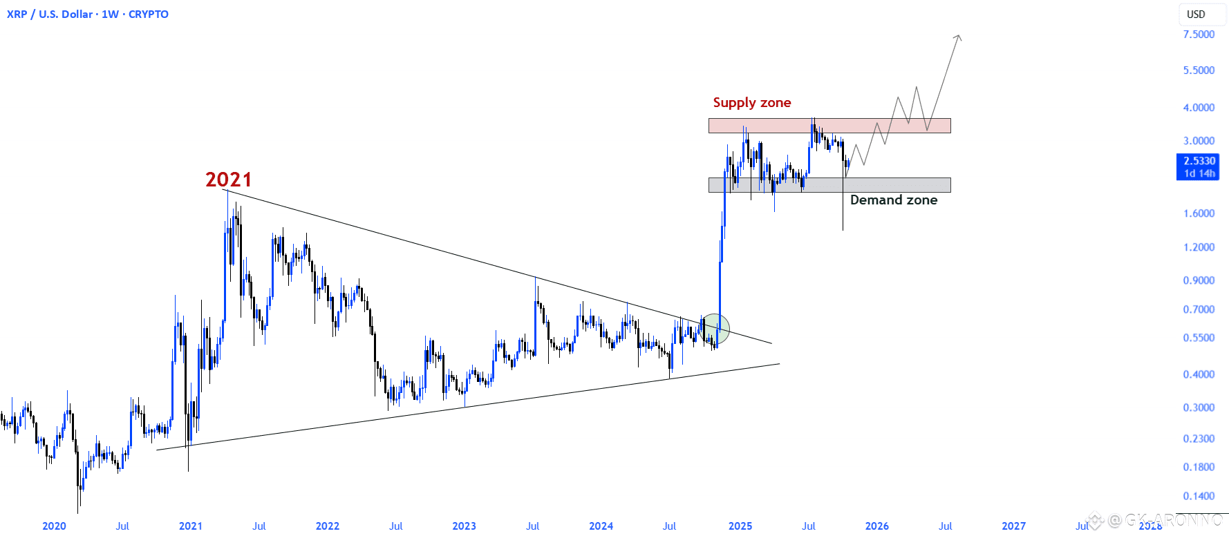 An upward breakout of the supply zone will trigger the next parabolic run.