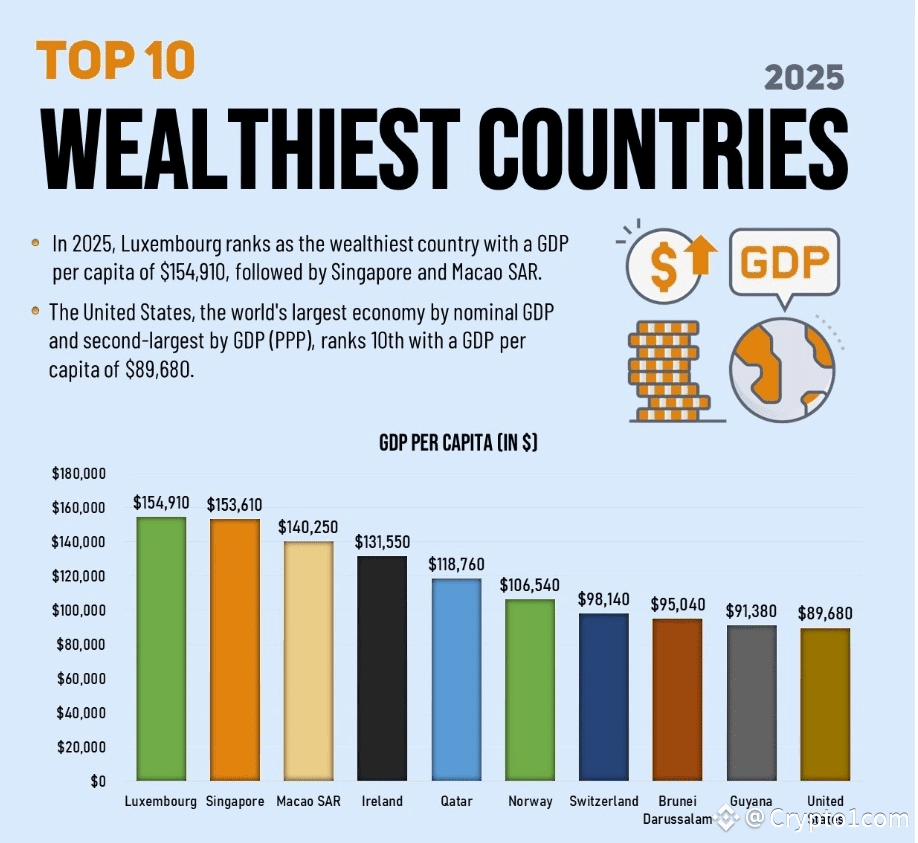 💭When people think of the richest countries, the United States often comes to mind because it has the largest economy overall. However, many smaller nations in terms of population and land area surpass the U.S. in GDP per capita. Nations like Luxembourg, Singapore, Ireland, and Qatar consistently rank among the richest countries in the world by GDP per capita. These countries take benefit of their stable governments, highly skilled workers, strong financial sctors and business-friendly environments. All these factors help them to maintain their economic dominance on a global level.