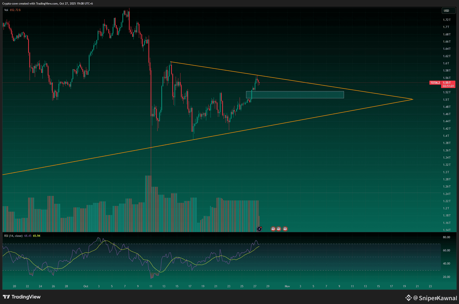 Those who know about market and have knowledge knows this index . i am talking about USDT.D. USDT.D has negative correlation with crypto market . USDT.D has created a descending tringle pattern . it is bullish sign . so it also indicates that crypto market is bearish .