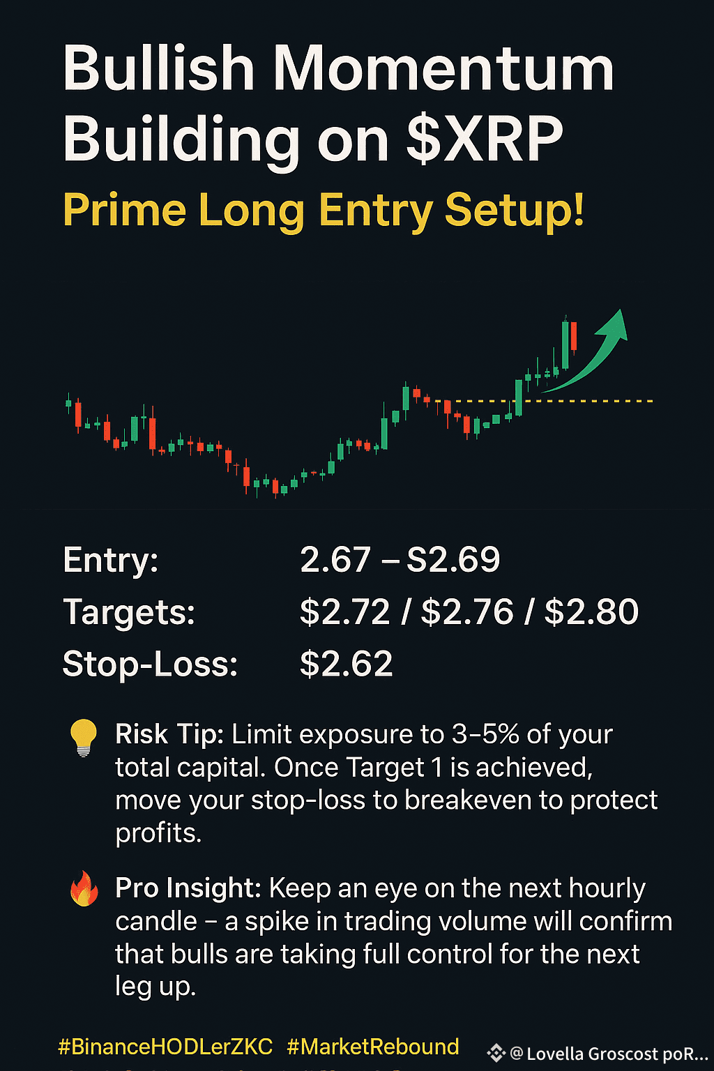 $XRP has broken out decisively after holding steady near the $2.60 support zone. The latest price movement signals renewed bullish strength, suggesting that a fresh upward wave is now in motion. If the momentum continues, $XRP could quickly aim for the $2.75–$2.80 region in the short term.