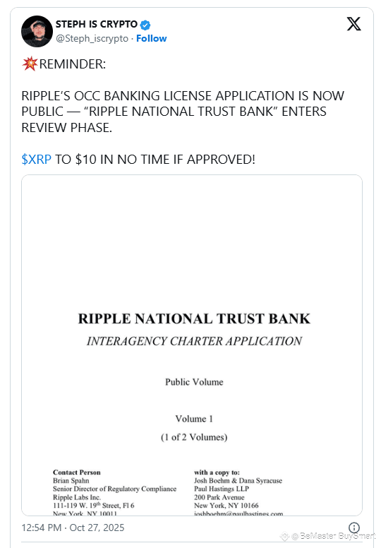 $XRP Ripple’s ongoing push into regulated finance has taken a decisive turn. The company’s long-awaited application for a national trust bank charter with the Office of the Comptroller of the Currency (OCC) is in the public review phase, marking a key moment in its expansion into traditional financial infrastructure.