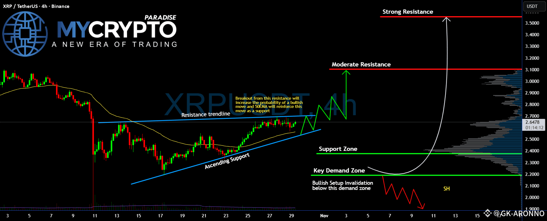 💎#XRP is currently trading around $2.65, consolidating right below a critical resistance trendline. What’s building here is a textbook ascending triangle, and the squeeze is tightening fast and moving toward an inevitable breakout.