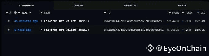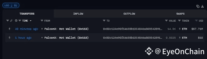 The accumulation continues! Just 42 minutes ago, two newly created wallets ; likely linked to Bitmine , received a massive 33,948 $ETH (over $135 million) straight from FalconX.