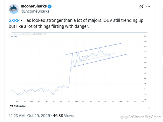 $XRP Widely followed analyst Income Sharks has raised caution about the current XRP trend, laying emphasis on the OBV indicator.