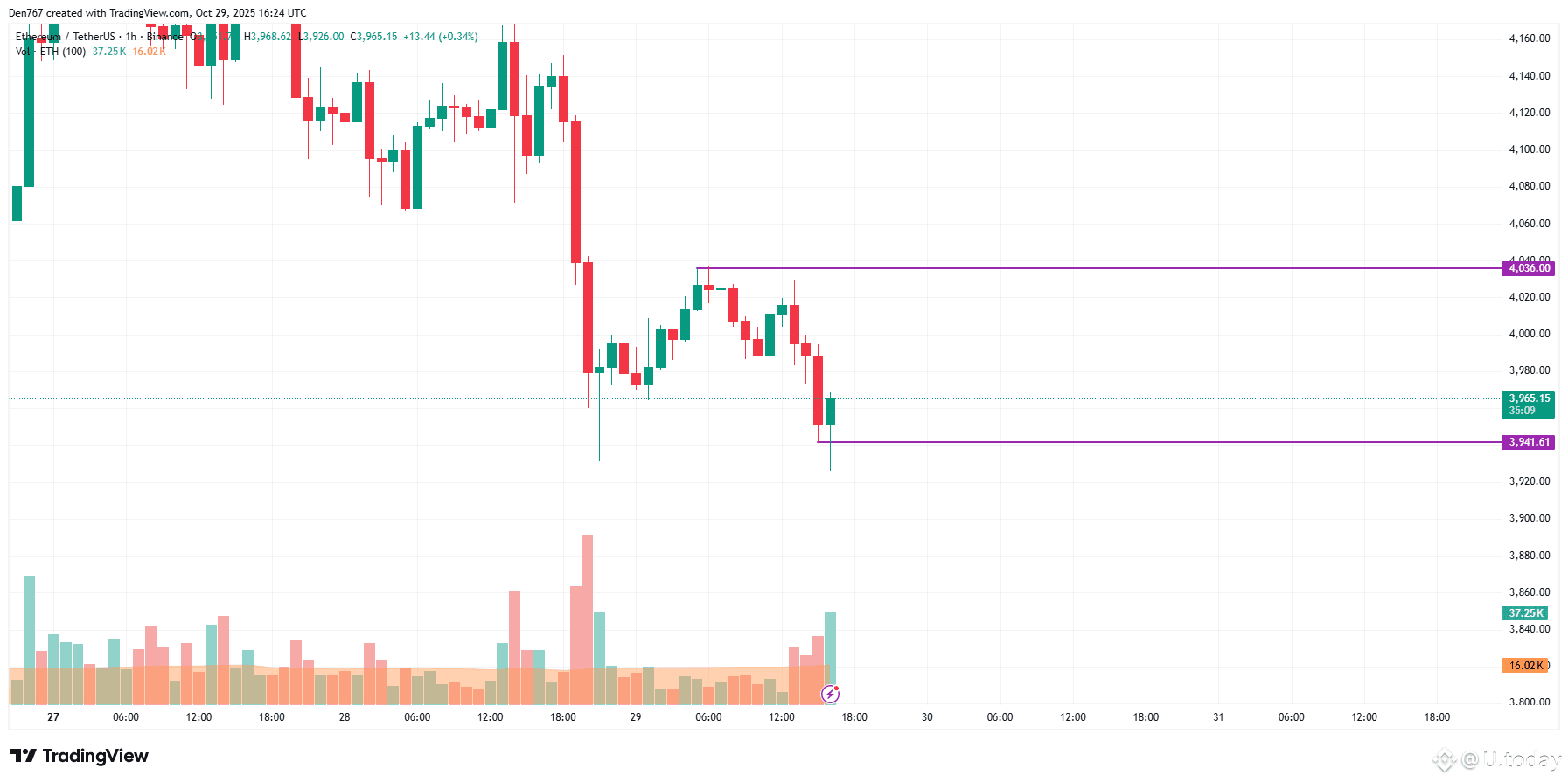 On the hourly chart, the rate of ETH has made a false breakout of the local support of $3,941. However, if a bounce back does not happen, traders may see a further drop to the $3,900 mark.