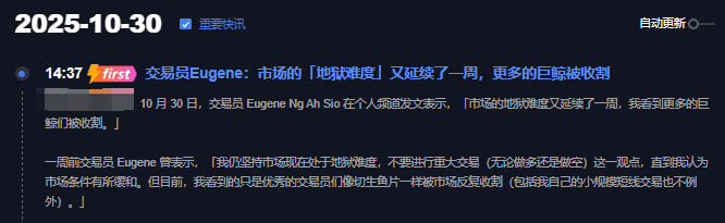 Trader Eugene mentioned that 'even excellent traders are being repeatedly harvested,' which indicates that the market is approaching a phase bottom. Historically, every time such an extreme situation occurs, a rebound is often not far away.
