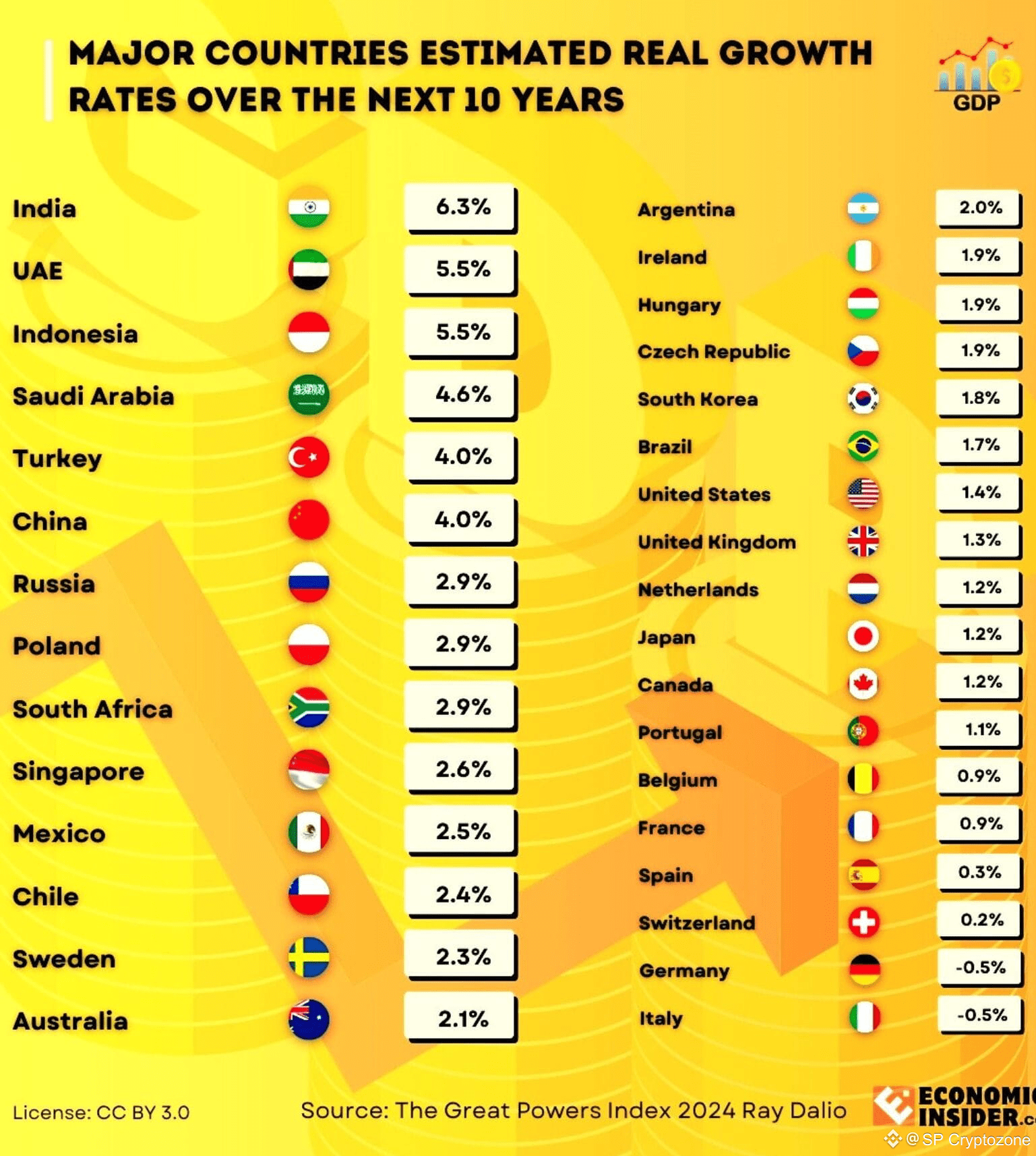 ๐ Estimates of major economies' real growth rates over the next 10 years: Real growth rate of the nation