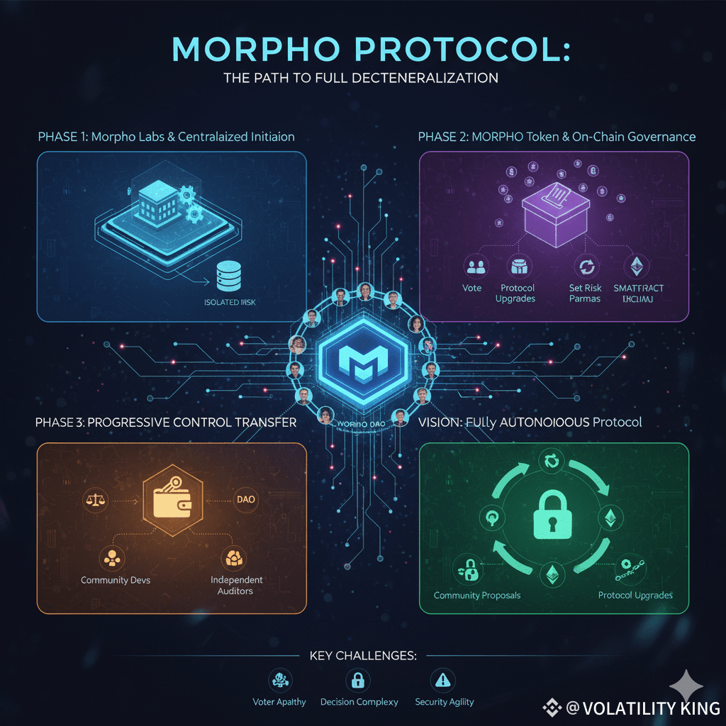 Decentralized finance was born to eliminate intermediaries and hand control back to users. For Morpho Protocol, decentralization isnât just a conceptâitâs a structured evolution touching governance, upgrades, risk, and ownership. From its early centralized development under Morpho Labs to its emerging DAO-led ecosystem, this transformation reflects the maturing ideals of open finance.