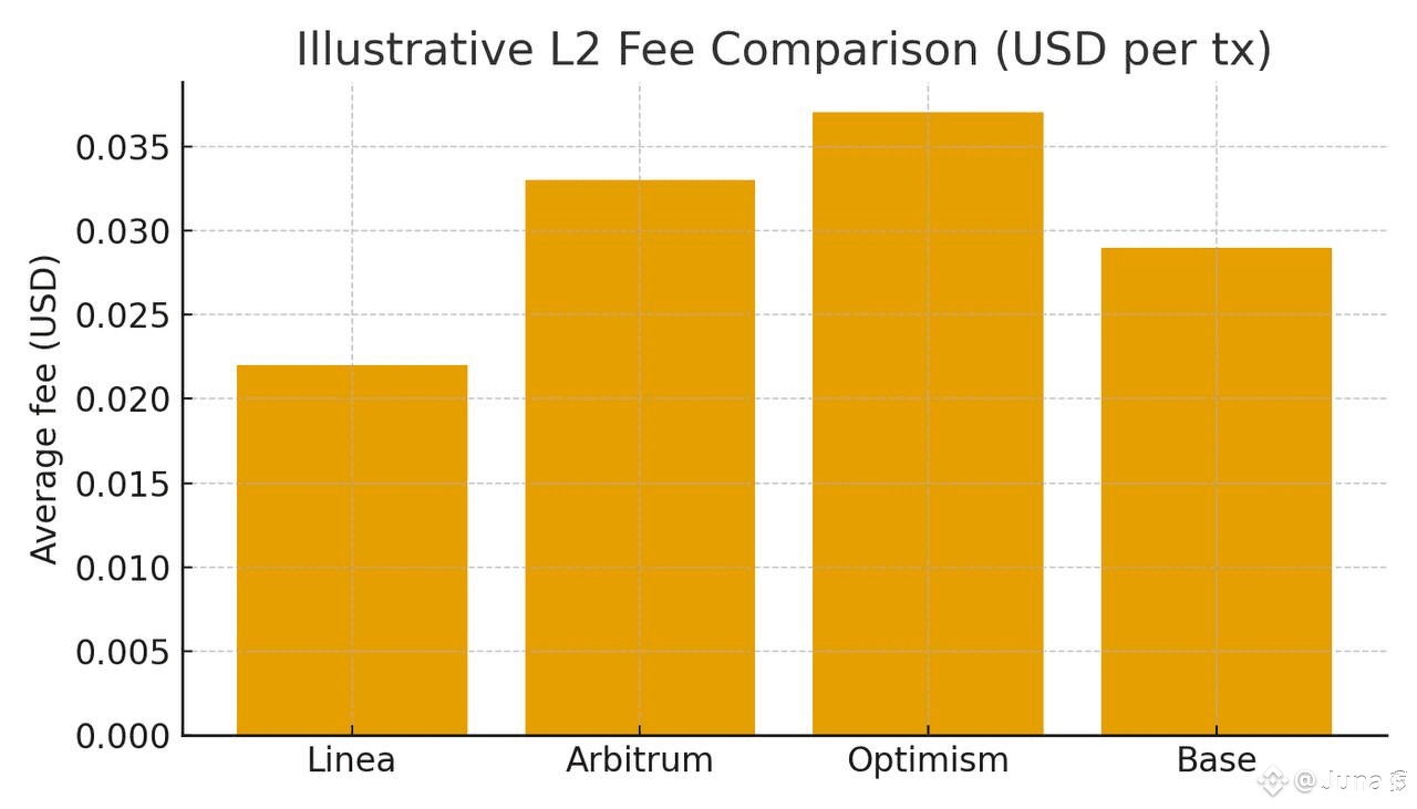 Let’s be honest: users talk about “security,” but they leave because of fees. If an L2 can say, “we’re in the 2–3 cent range for normal ops,” that’s the kind of UX that lets you run a loyalty app or an onchain social timeline. Linea is playing in that zone.