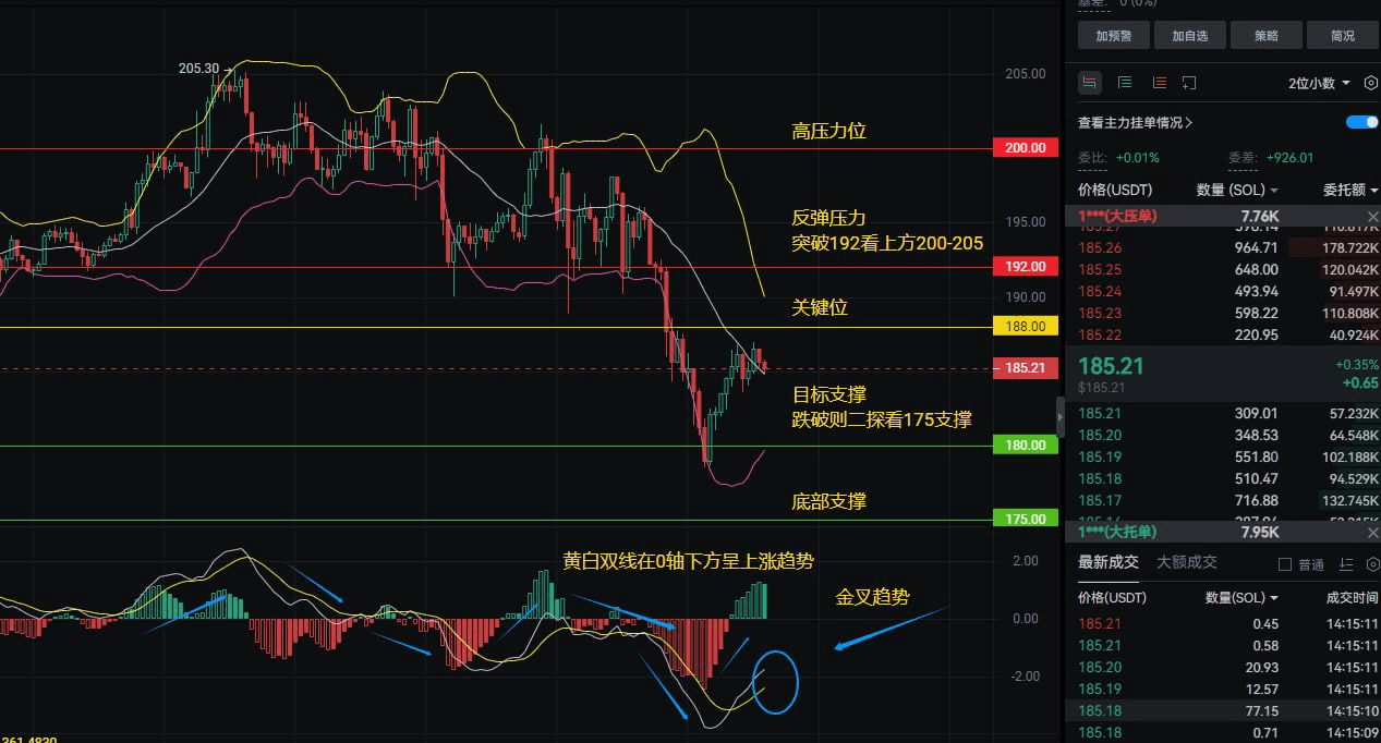 Let's just say, with these two pieces of news combined: the platform is spending money to activate on-chain transactions, and the technical analysis has reached a rebound window, SOL is very likely to make a move in the short term. But remember, don't chase the highs! If it pulls back to around 185, try a small position; wait for a breakout above 192 to add to your position.