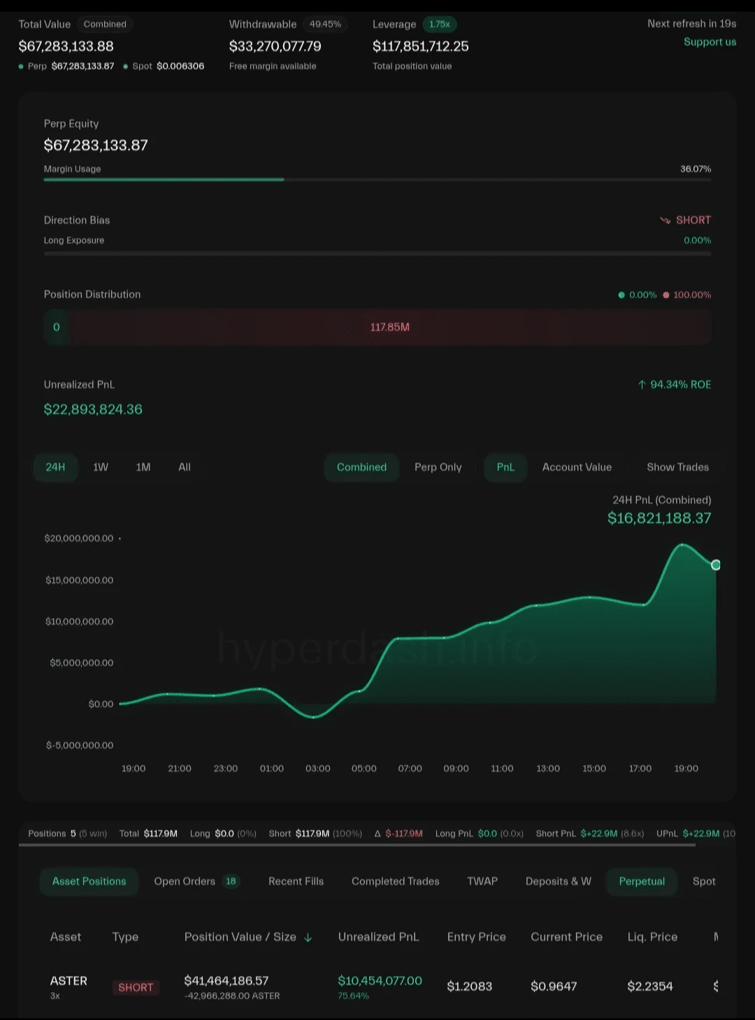 Critical information has emerged: one of the largest whales opened a massive short position on the asset $ASTER