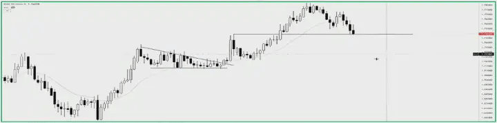 Secondly, the pullback should be simple and clear, without too many horizontally overlapping candlesticks. If a pullback involves too many horizontally overlapping candlesticks, it represents a small trading range. After entry, this becomes a clear resistance level in the direction of price movement. We want to avoid such clear resistance in the direction of price movement after entry.