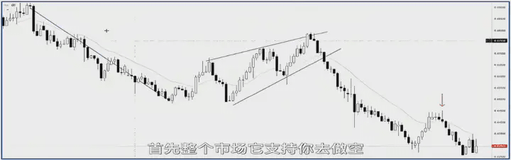 The candlestick that followed was a bearish one, but it still largely overlapped with the previous one, indicating a non-trend candlestick. If this is your first entry, your short position hasn't been confirmed by the market yet, so keep watching. The arrow indicates a very crucial candlestick. First, it showed a false upward breakout, and then it was the second candlestick to break below the previous low.