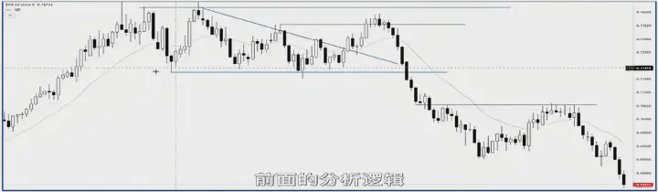 Given a chart, let's first analyze what the market is doing. First, the market experienced a rapid and deep decline, followed by a complex correction. This correction was actually a wedge correction, a variation of the triple push wedge. Even without considering the wedge or triple push pattern, you can see that the strength of each breakout was decreasing, eventually ceasing all breakouts, or even breaking downwards. This indicates that in the subsequent price action, the price will definitely be biased towards shorting.