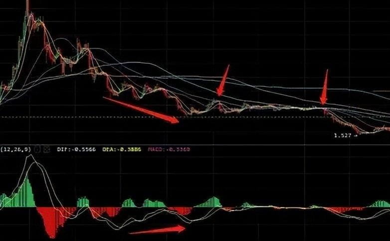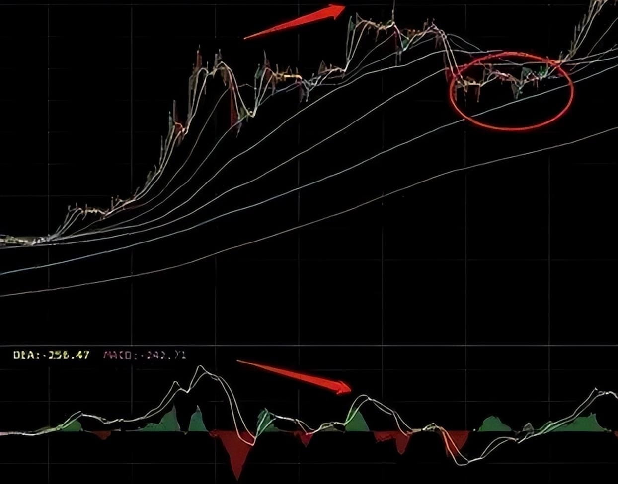 When a bottom divergence occurs, the pressure from the moving averages on the rise is evident, and it is time to take profits at high points, waiting for a breakthrough of the moving average position to buy at lower points again.