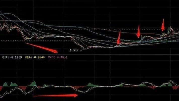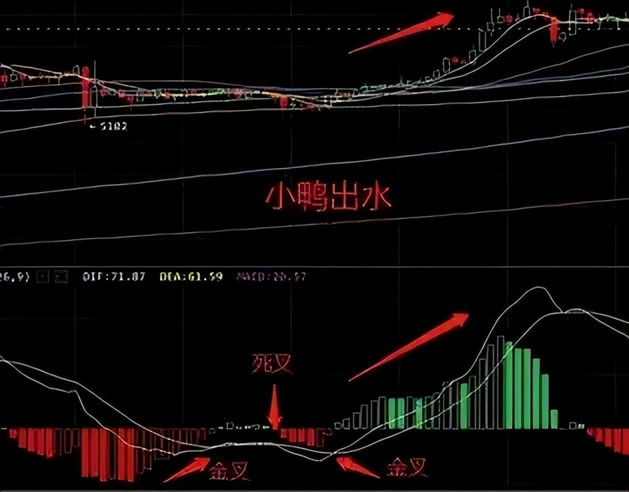 (2) Duckling emerging from the water: The fast line forms a golden cross with the slow line below the 0 axis but does not cross above the 0 axis, or just crosses above slightly before returning below the 0 axis, then a dead cross occurs with the slow line. After a few days, it forms a golden cross with the fast line again.